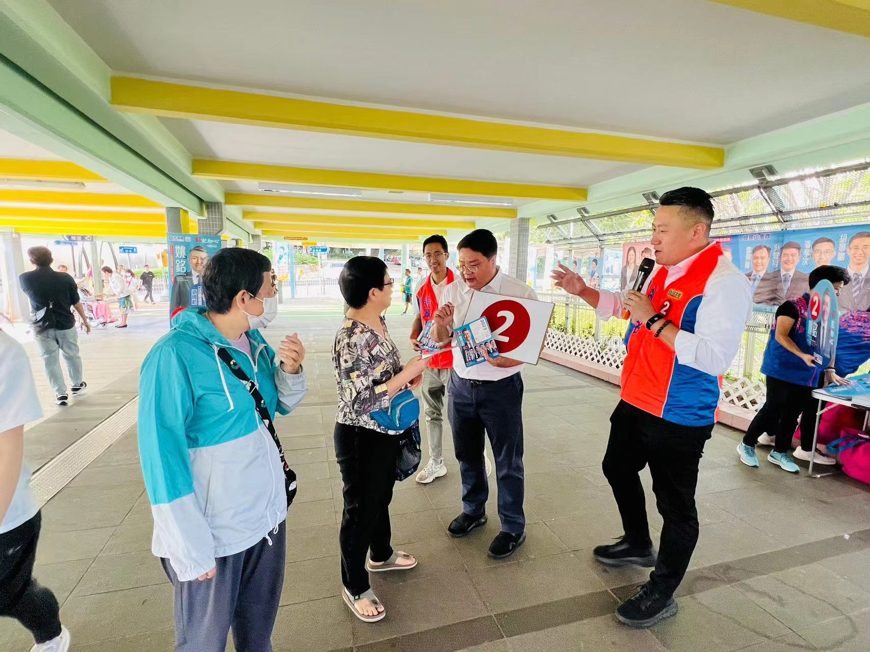 2023年區議會選舉將於12月10日進行投票,獲得有效提名的候選人紛紛在社區擺街站爭取市民支持。港區全國人大代表李聖潑今早(12日)到粉嶺港鐵站天橋,支持民建聯候選人姚銘。