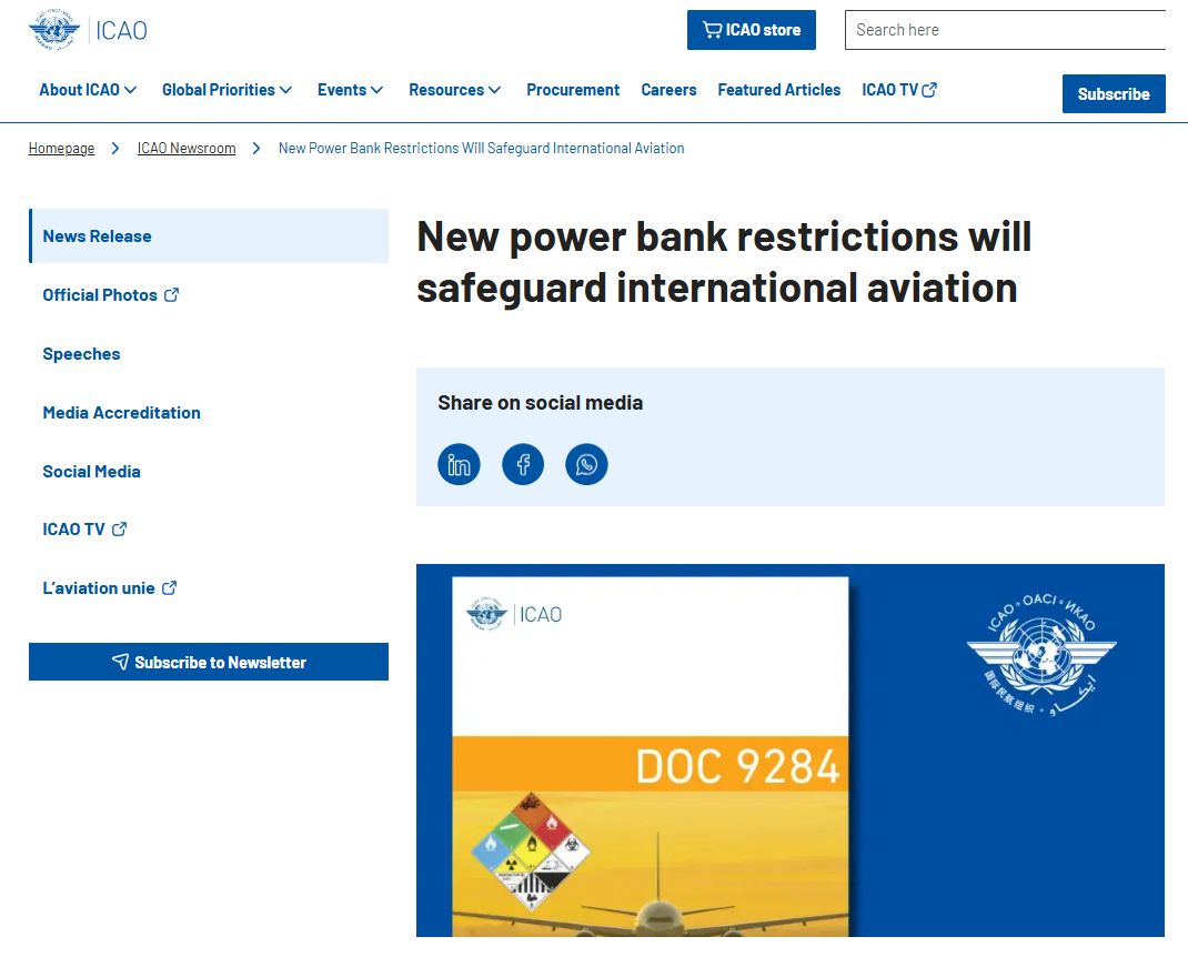 聲明說,新規目的是應對新出現的風險,加強旅客和航空公司的安全。新規定基於專家建議,通過獨立技術評估後已獲得國際民航組織理事會批准。相關技術細則的補充文件,將分發給組織各成員。