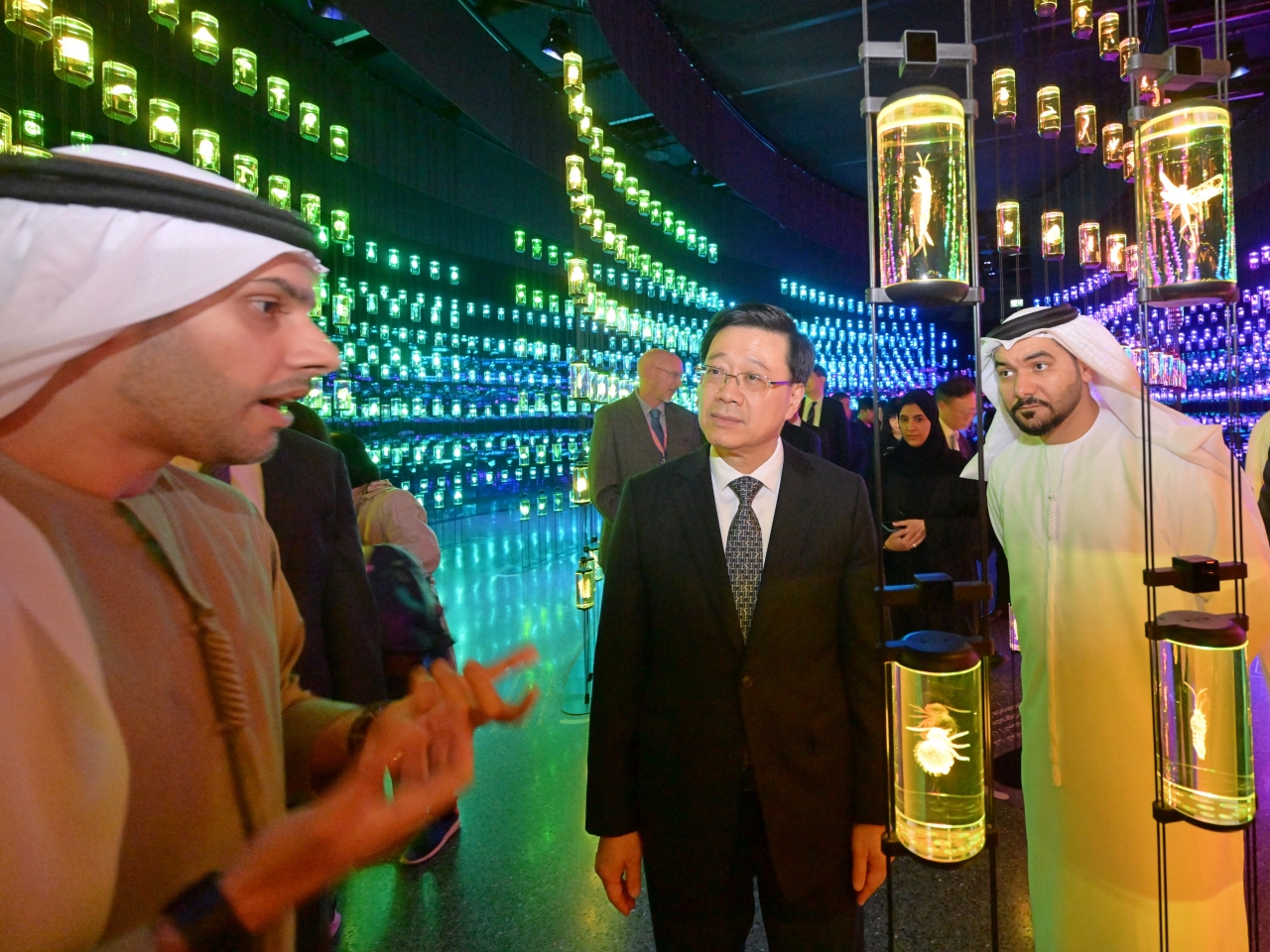 李家超昨日曾經同阿聯酋副總統兼總理會面,並前往參觀由迪拜未來基金會創立的未來博物館,期間李家超同阿聯酋人工智能、數字經濟和遠程工作應用國務部長,以及迪拜未來基金會副常務董事,共同見證香港數碼港同迪拜未來基金會簽署合作備忘錄。
