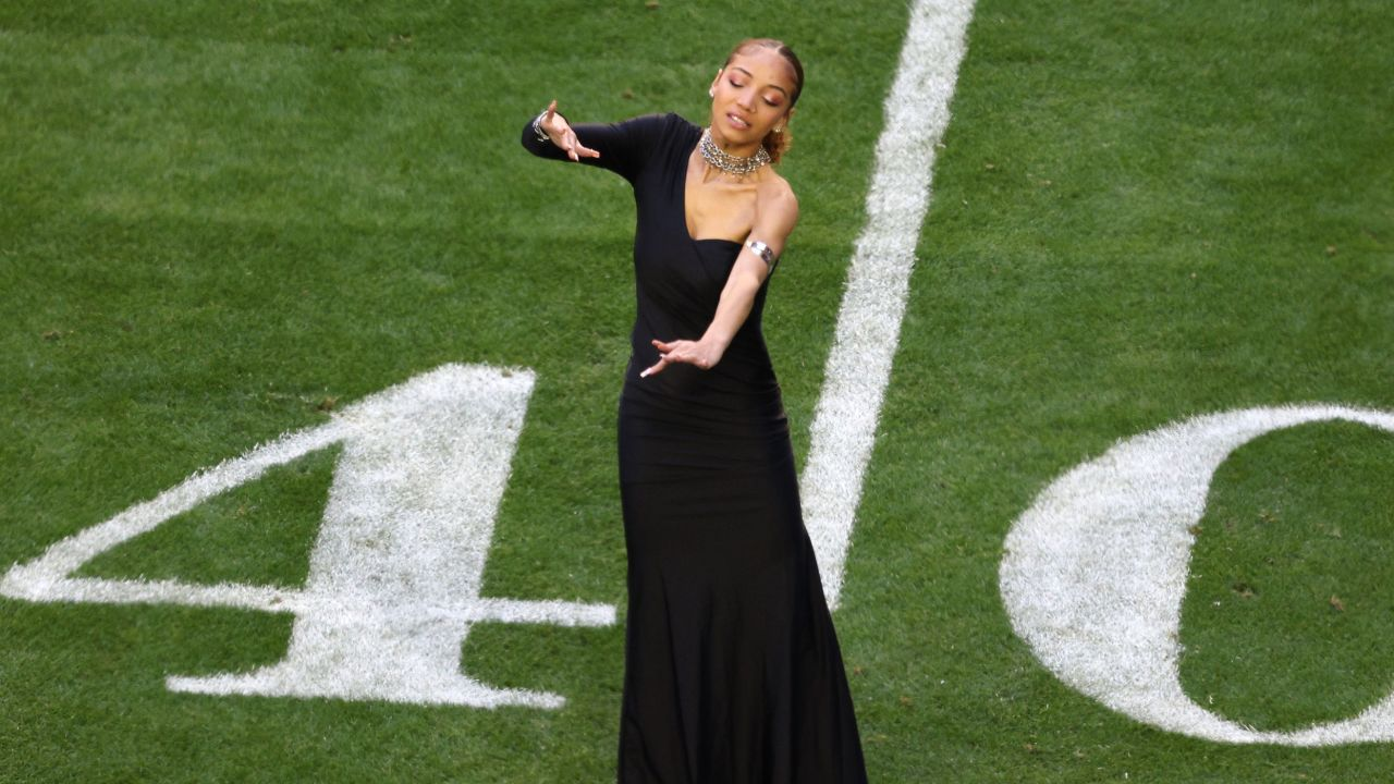 蕾哈娜在比赛中场休息时表演了13分钟的布景,迈尔斯为听力受损的电视观众签署了歌词。赛前,这位20岁的球员在女演员谢丽尔·李·拉尔夫(Sheryl Lee Ralph)演唱《黑人国歌》时也签了名,”放声歌唱 .”