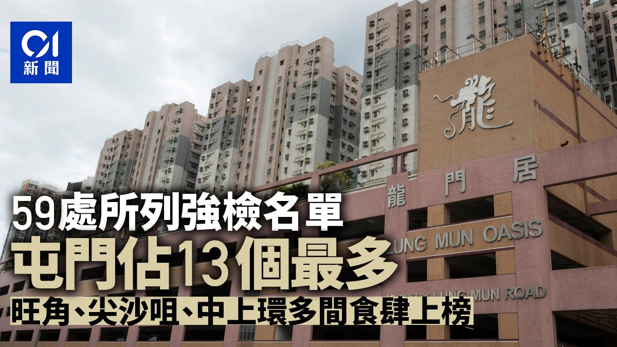 本港昨日 (23日)新增1,650宗新冠肺炎確診個案,連續9日破千。政府今晨將59個處所列入強制檢測名單,34個為住宅,24個為食肆。屯門區佔當中13個,包括疑有26名顧客染BA.2.12.1變種病毒的卓爾居海港酒家。