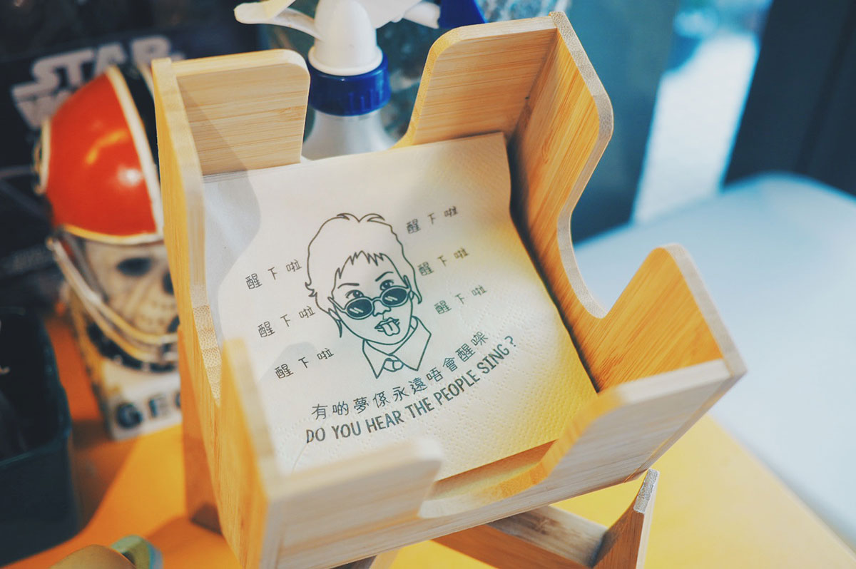 這裡用上了許多港產電影作為設計靈感,例如紙巾上印上了電影《重慶森林》的對白。