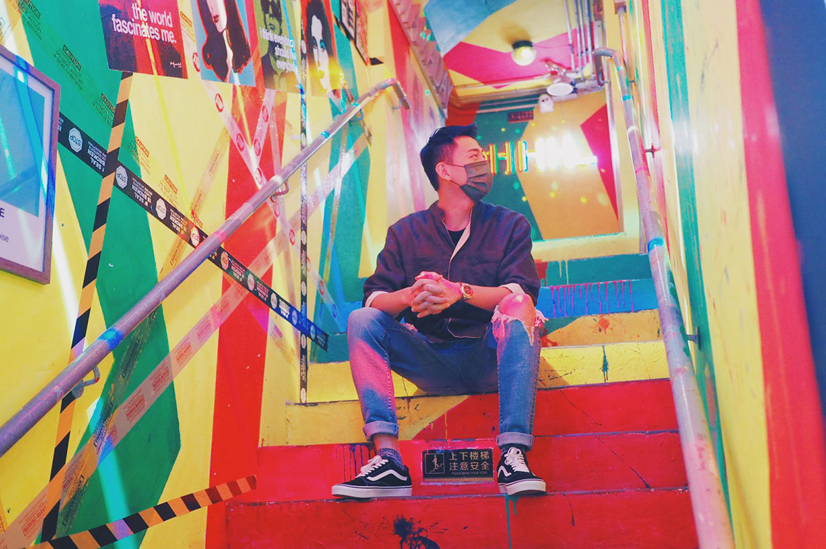 三層高的戰前唐樓有 75 年歷史,但設計卻十分前衛:騎樓獨有柱廊上的超抵死對聯、化身奇幻熒光風格的樓梯,「九唔搭八」,玩味十足。不但設計大膽,在傳統舊區做特立獨行的商店,也很有「吉士」(guts),皆因對面就是麻雀館,旁邊又有按摩店,因而也需面對許多「潛規則」,brooks shoes「之前我們的對聯油成紅色,又有個『鬼』字,比對面麻雀館的老闆『溫馨提示』。」所以才改成現在咖啡店門藍色對聯的設計。