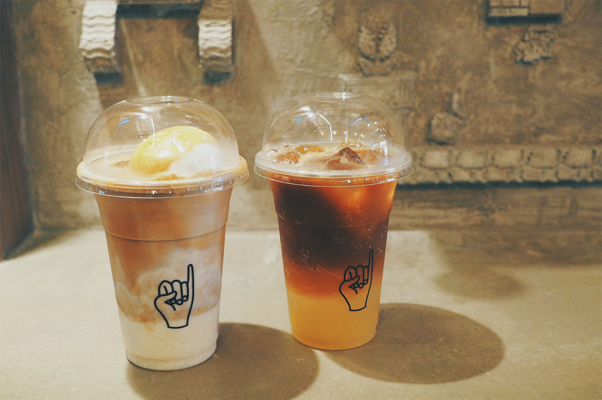 這裡咖啡除了名字特別以外也很有創意,右邊是加了豆腐的咖啡;而左手邊咖啡名字叫「是是鬼鬼但但」,貫徹店的玩味性質。